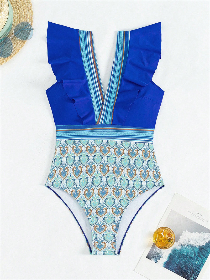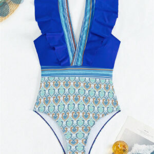 ชุดว่ายน้ำวันพีซ คอวี เปิดหลัง แต่งระบาย สุดเซ็กซี่