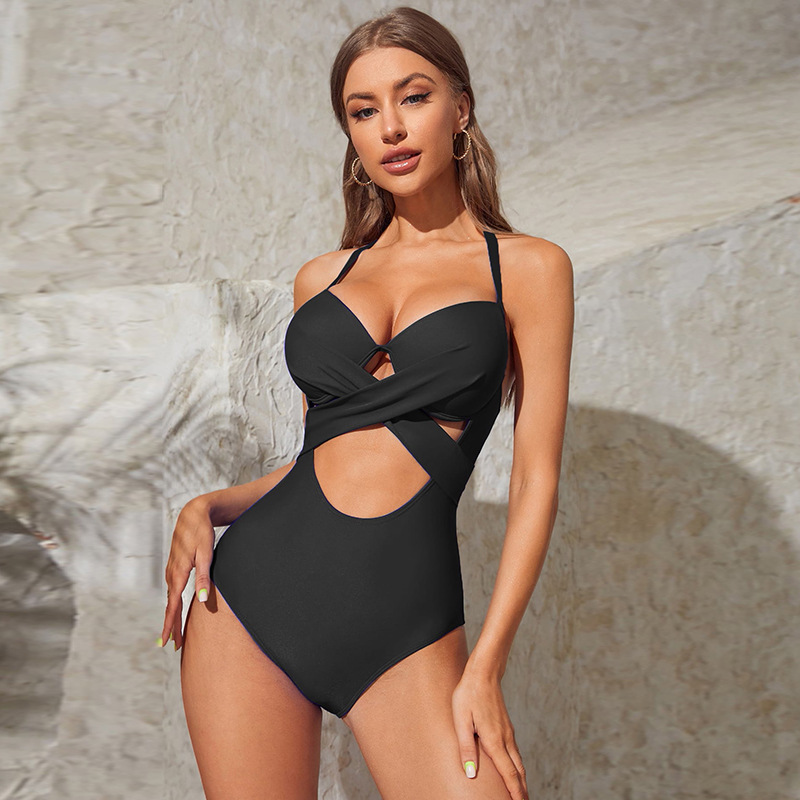 ชุดว่ายน้ำวันพีชสีพื้นเซ็กซี่ เอวสูง ด้านหลังสวยงาม บิกินี่