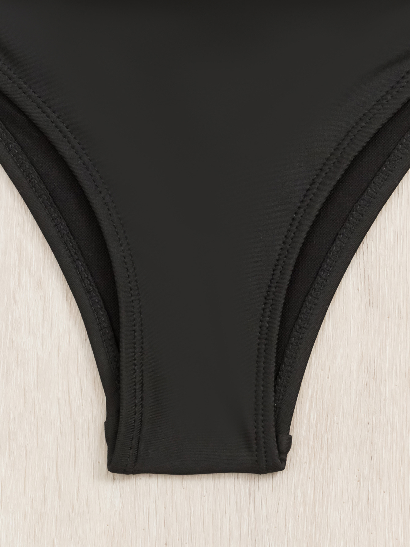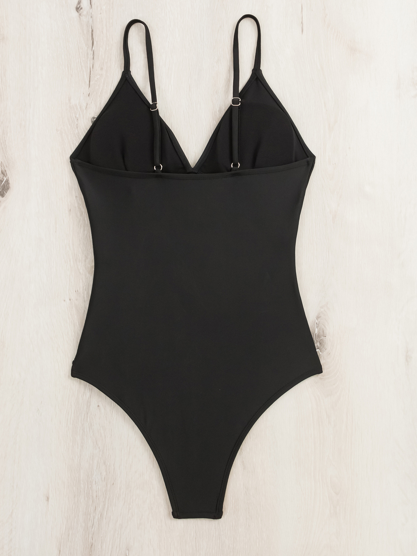 ชุดว่ายน้ำวันพีซ สีดำ คอวี จับจีบหน้า เปิดหลัง ชุดว่ายน้ำเรียบหรู สายปรับได้