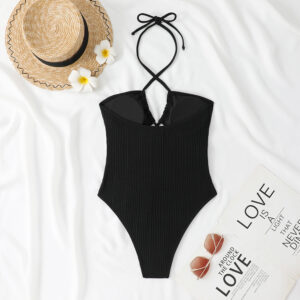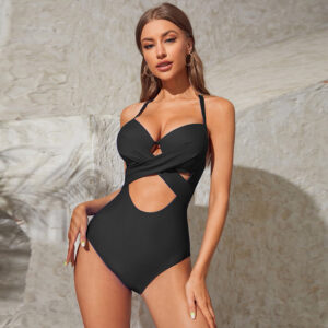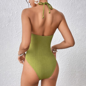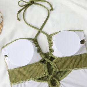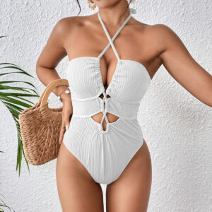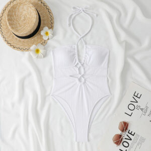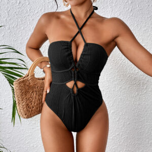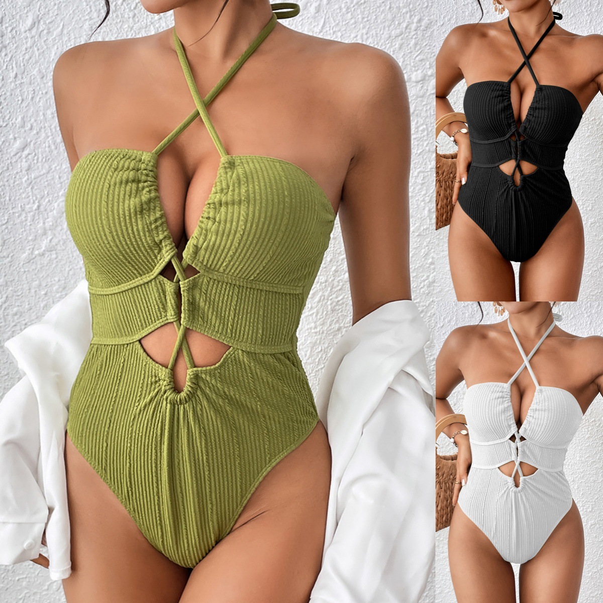 ชุดว่ายน้ำบิกินี่วันพีชแบบสายเดี่ยว แต่งเชือกผูกด้านหน้า เก็บทรงเก็บกระชับหุ่นสวยเซ็กซี่