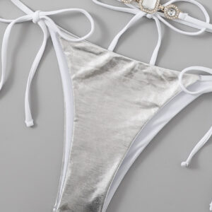 บิกินี่แบบแยกชิ้นสไตล์ยุโรปและอเมริกา บิกินี่ผู้หญิง ชุดว่ายน้ำตกแต่งอัญมณีเทียม