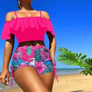 ชุดว่ายน้ำแยกชิ้นใหม่สไตล์ยุโรปและอเมริกา บิกินี่สายเดี่ยวเอวสูงเซ็กซี่