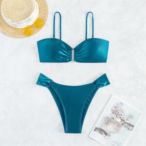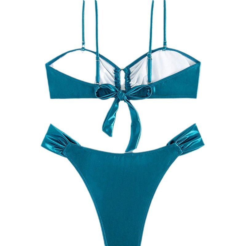 ชุดว่ายน้ำสีพื้น สายฝอ บิกินี่สปอร์ตเซ็กซี่ ผ้ามัน