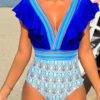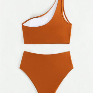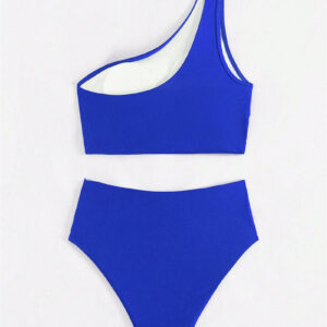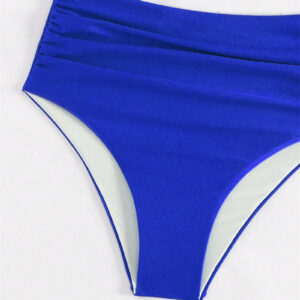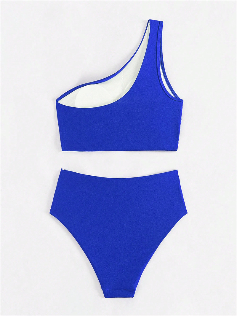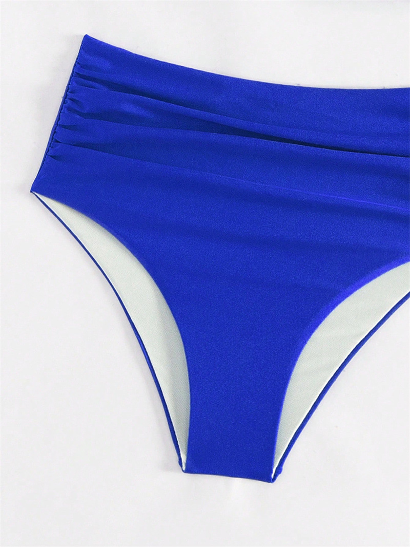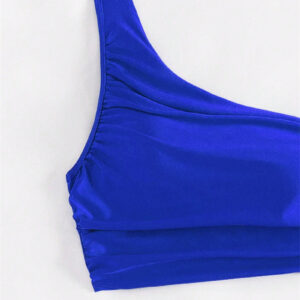 ชุดว่ายน้ำแยกชิ้นสีพื้นจีบยุโรปและอเมริกาใหม่สำหรับผู้หญิง บิกินี่ไหล่เดียวหลังสวยเซ็กซี่ บิกินี่