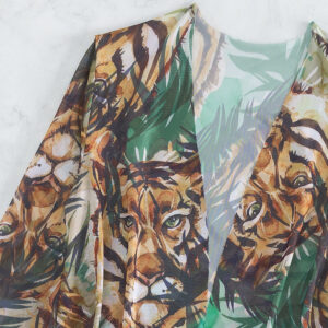 ชุดว่ายน้ำบิกินี่ 2 ชิ้น เซ็กซี่สายคล้องคอ พร้อมเสื้อคลุม พิมพ์ลายเสือทั้งชุด